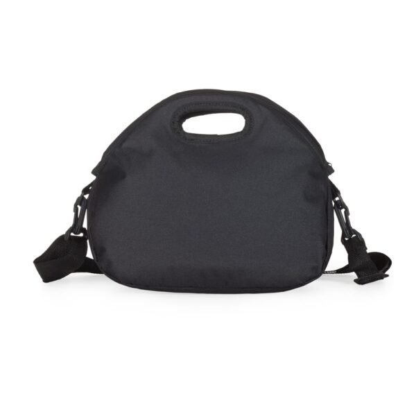 Bolsa térmica de mão com 8 litros, material externo de nylon. Acompanha plaquinha para personalização e alça com gancho para utilizar carregada ao corpo.