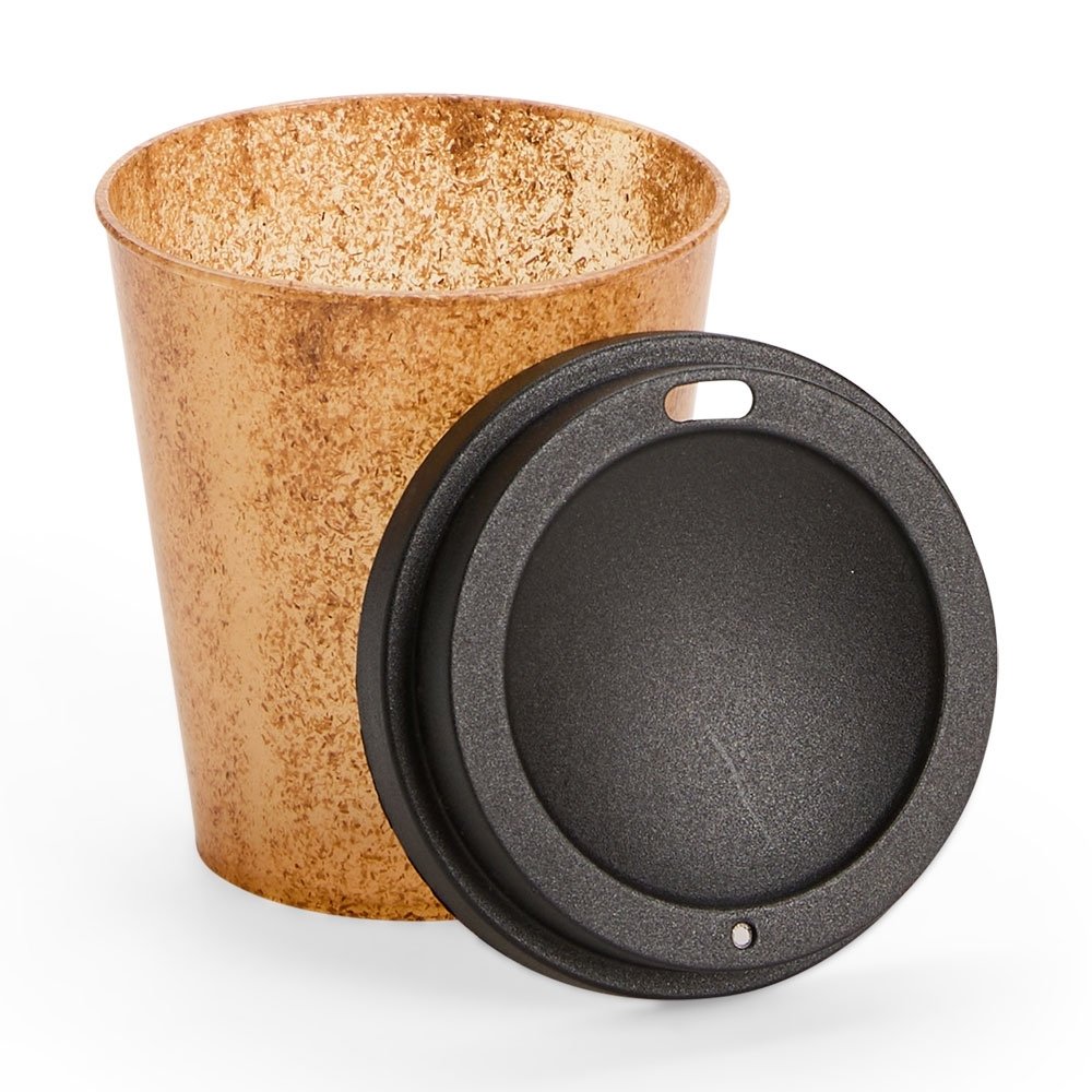 Copo produzido em fibra de coco com capacidade de 350 ml. Possui tampa plástica com bocal.